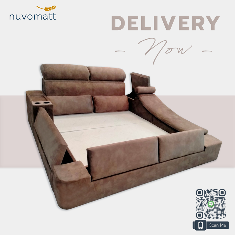 มีที่วางแก้ว เบาะพิงหัวเตียงสามารถถอดออกได้